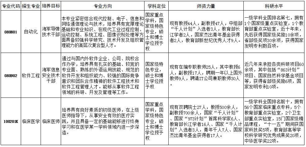 2015年華中科技大學國防生招生專業(yè)介紹