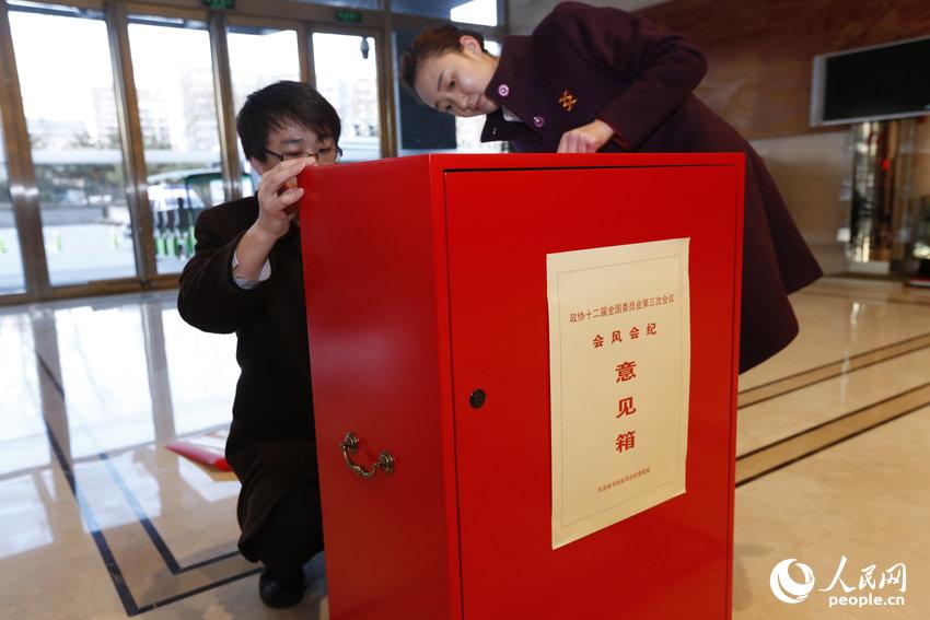 2015年03月01日,北京,會風(fēng)會紀(jì)意見箱亮相全國政協(xié)十二屆三次會議委員駐地。CFP