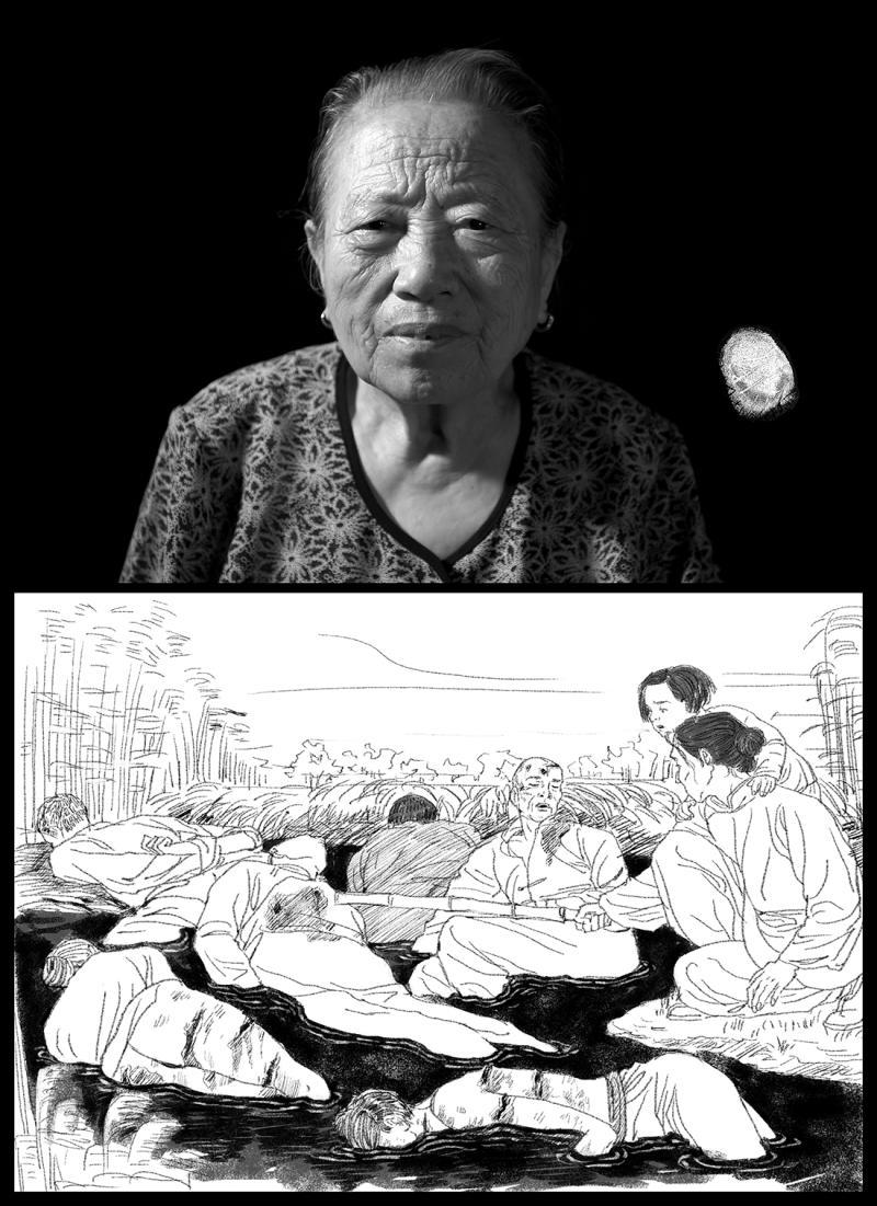 石秀英,1926年10月26日生。1937年冬,日軍進城三天后,石秀英父親出門再也沒回來,后來在一堆被日本人屠殺的死人堆中找到身中三刀而亡的父親。石秀英的大哥石坤寶被日軍抓上卡車?yán)吆笫й櫋?/p>