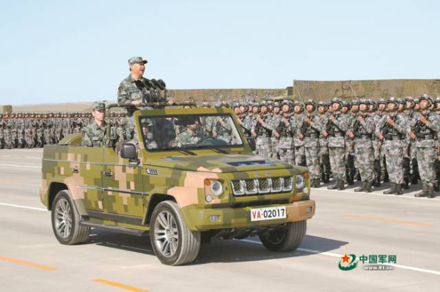 2017年7月30日上午,慶祝中國人民解放軍建軍90周年閱兵在朱日和聯(lián)合訓(xùn)練基地隆重舉行。中共中央總書記、國家主席、中央軍委主席習(xí)近平檢閱部隊并發(fā)表重要講話。這是習(xí)近平乘車檢閱部隊。 解放軍報記者 周朝榮 攝