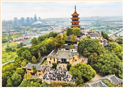10月14日,來自納米比亞、孟加拉國、印度等13個國家的30多位外國友人在江蘇南通與狼山鎮(zhèn)街道20多位花甲老人一起佩戴茱萸香囊登狼山覽景。許叢軍攝(人民視覺)