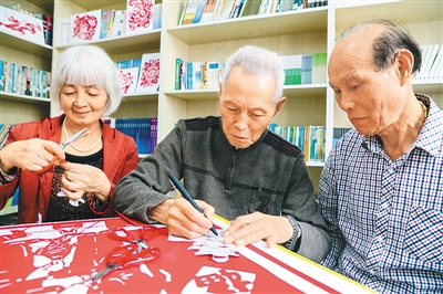 浙江省德清縣武康街道的老人們剪紙迎接重陽佳節(jié)。王 正攝(人民視覺)