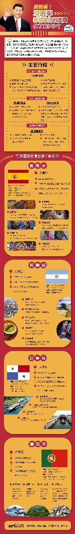應西班牙王國國王費利佩六世、阿根廷共和國總統(tǒng)馬克里、巴拿馬共和國總統(tǒng)巴雷拉、葡萄牙共和國總統(tǒng)德索薩邀請,國家主席習近平將于11月27日至12月5日對上述四國進行國事訪問。
