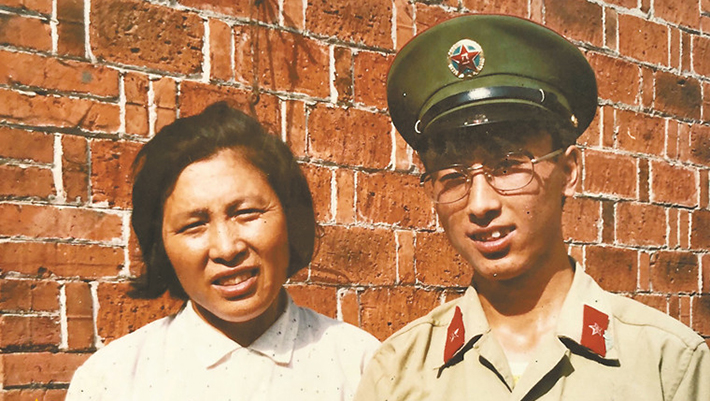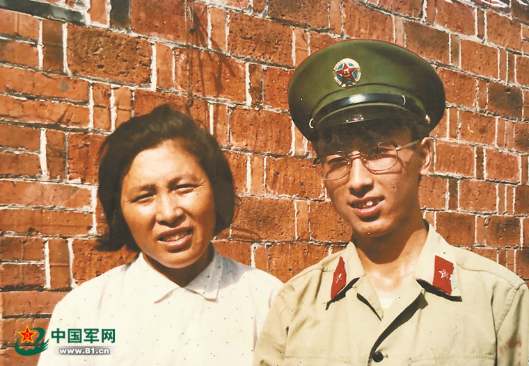 1986年6月,韋昌進從前線返回老家,和母親汪生蘭在自家房屋前合影。