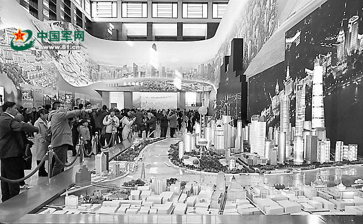 觀眾在參觀上海陸家嘴的沙盤模型。新華社記者 陳曄華攝