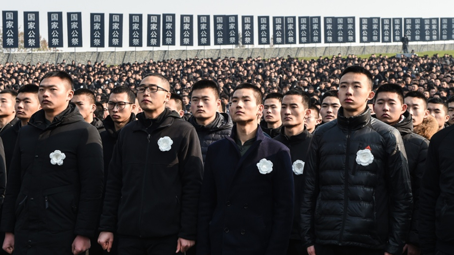 81年后的今天,第五個南京大屠殺死難者國家公祭日,古城南京,警報響起,國旗半降,哀樂低回。