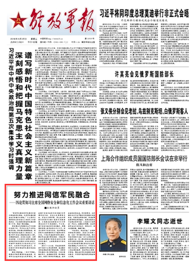 “網(wǎng)信軍民融合是軍民融合的重點(diǎn)領(lǐng)域和前沿領(lǐng)域,也是軍民融合最具活力和潛力的領(lǐng)域。”習(xí)主席在全國網(wǎng)絡(luò)安全和信息化工作會(huì)議上的重要講話,為加強(qiáng)網(wǎng)信領(lǐng)域軍民融合指明了方向,提供了根本遵循。