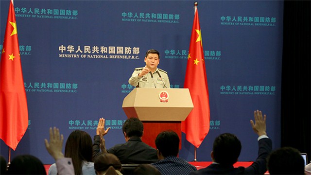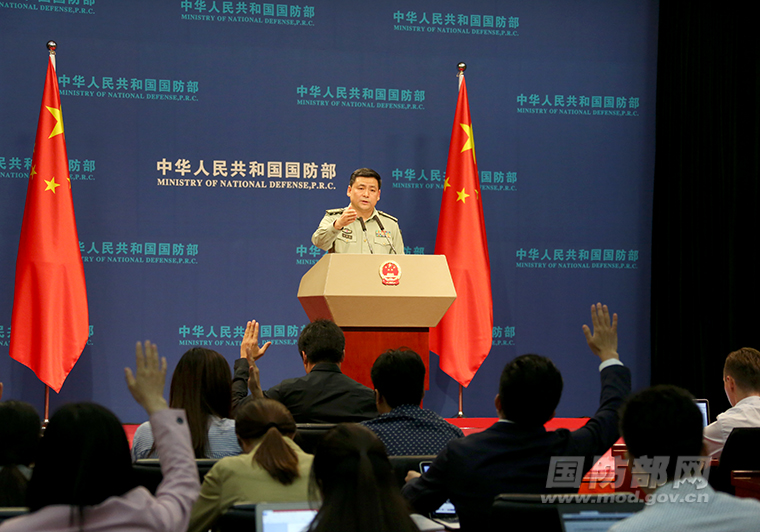 2018年9月27日下午,國防部召開9月例行記者會,國防部新聞局副局長、國防部新聞發(fā)言人任國強大校回答記者提問。記者 馮開華 攝