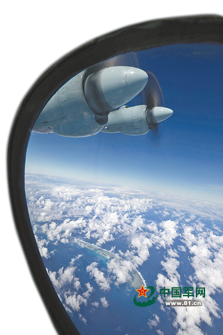 國產(chǎn)中型運輸機群沿著預(yù)定航線,飛越南海上一座座美麗的島礁。劉應(yīng)華攝
