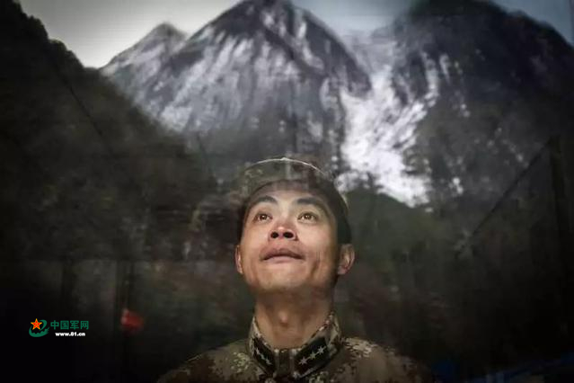 2018年1月9日,西藏山南軍分區(qū)邊防某營(yíng),楊祥國(guó)站在玻璃窗前眺望雪山。