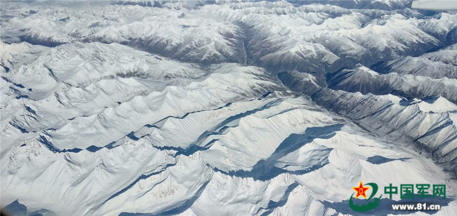 在飛機上俯瞰雪域高原。中國軍網記者 喬楠楠 攝