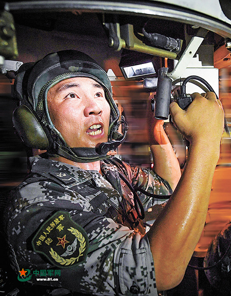 訓(xùn)練結(jié)束,車長(zhǎng)王銳鉆出戰(zhàn)車,敏捷地跳到地面,記者和王銳見了面——濃眉大眼,雙手曬得黝黑,衣服濕透了。他擦了一把汗,對(duì)記者說(shuō):“只有把手中的武器練到極致,上了戰(zhàn)場(chǎng)才能一招制勝。”