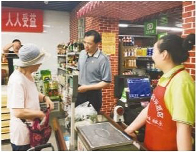 魏建明(中)在百萬莊百姓生活服務(wù)中心了解運(yùn)營情況,與居民交談。資料照片