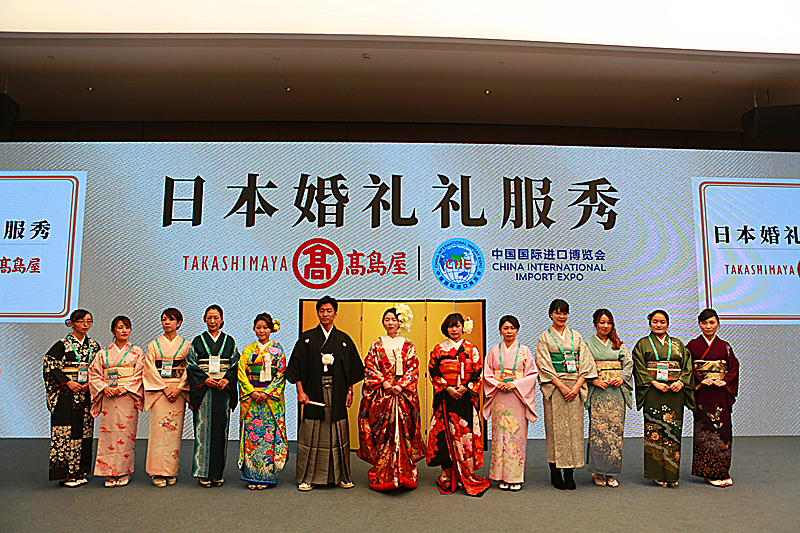 這恐怕是進口博覽會上最養(yǎng)眼的秀場了,日本展商高島屋今天在“四葉草”辦“日本婚禮禮服秀”,展現(xiàn)“華麗指數(shù)”最高、最能代表日本傳統(tǒng)工藝的服裝。專程從日本趕來的婚禮化妝師現(xiàn)場演示了和服的穿著過程,臺下看秀的上海阿姨舉著手機狂拍,“哎呦漂亮漂亮,但穿起來也真作孽!”