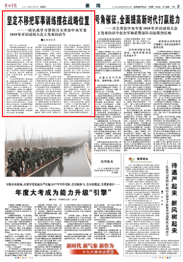 請(qǐng)關(guān)注今天出版的《解放軍報(bào)》的評(píng)論員文章《堅(jiān)定不移把軍事訓(xùn)練擺在戰(zhàn)略位置》——