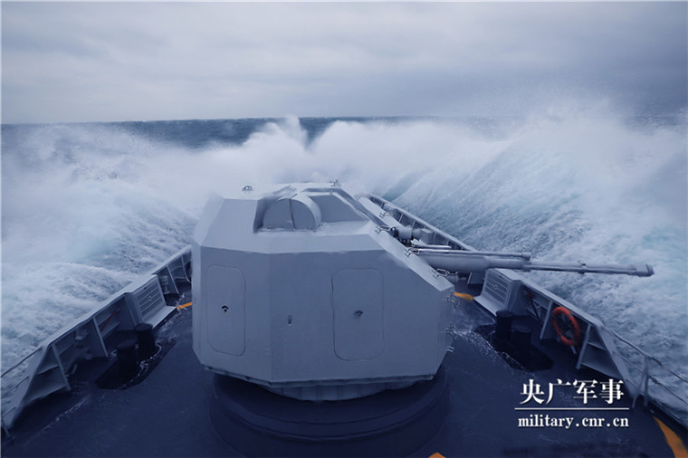 12月6日,惡劣海況有所減緩,但一陣陣涌浪襲來,時刻考驗(yàn)著年輕的水兵。在主炮對岸射擊現(xiàn)場,隨著指揮員下達(dá)射擊口令,炮彈劃過膛線,直撲目標(biāo),在海上礁石上炸開了花。