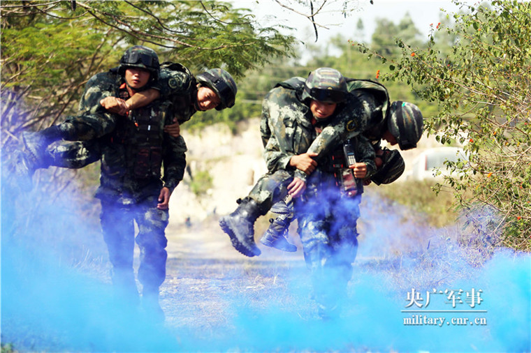 特戰(zhàn)隊(duì)員將傷員從戰(zhàn)場轉(zhuǎn)移。肖磊攝