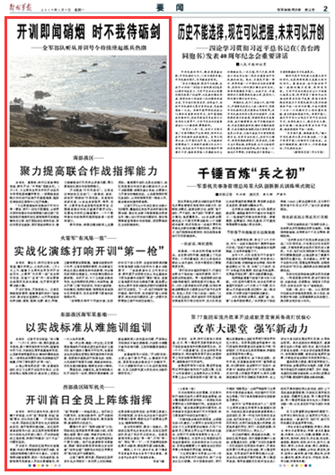 1月4日,中央軍委軍事工作會(huì)議在京召開,習(xí)主席出席會(huì)議并發(fā)表重要講話。會(huì)前,習(xí)主席簽署中央軍委2019年1號(hào)命令,向全軍發(fā)布開訓(xùn)動(dòng)員令,吹響了練兵備戰(zhàn)的時(shí)代號(hào)角。全軍部隊(duì)聽從開訓(xùn)號(hào)令持續(xù)掀起練兵熱潮。請(qǐng)關(guān)注今天出版的《解放軍報(bào)》的報(bào)道——