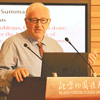 講座中,澳大利亞中國(guó)問題專家柯林·麥克拉斯(中文名為馬克林)與北京外國(guó)語(yǔ)大學(xué)的師生們分享著他在中國(guó)的經(jīng)歷。改革開放