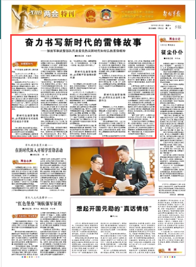 黨的十八大以來,習(xí)近平總書記多次作出重要指示,強(qiáng)調(diào)“雷鋒精神是永恒的,是社會主義核心價值觀的生動體現(xiàn)”“讓雷鋒精神在全社會蔚然成風(fēng),世世代代弘揚(yáng)下去”。“新時代,如何弘揚(yáng)雷鋒精神?”兩會上,這個話題再次引發(fā)解放軍和武警部隊(duì)代表委員的熱議和思考。請關(guān)注今日出版的《解放軍報》的詳細(xì)報道——