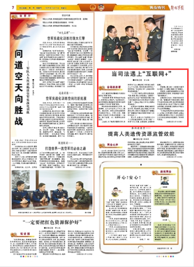 當(dāng)司法遇上“互聯(lián)網(wǎng)+”……請(qǐng)關(guān)注今日出版的《解放軍報(bào)》的詳細(xì)報(bào)道——