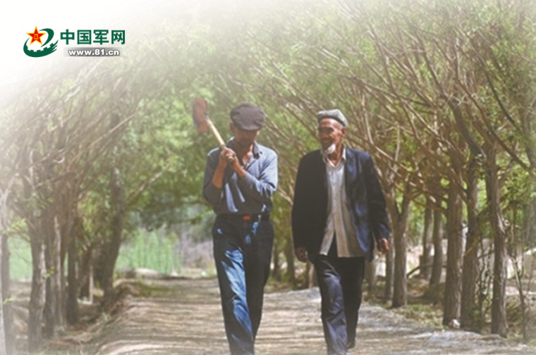 “漢族同胞喜歡松柏,爸爸就在羅光燮、王忠殿烈士墓旁種下了松樹柏樹,買買提大叔喜歡桃樹,爸爸就栽了兩棵桃樹。種的最多的還是白楊,長得快,好活。”