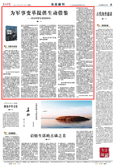我近些年在寫作中的一個最深的體會,就是要服務(wù)于軍內(nèi)外讀者尤其是中青年讀者的興趣變化,在社會和軍隊的改革大潮中出版書籍也應(yīng)有所改革。