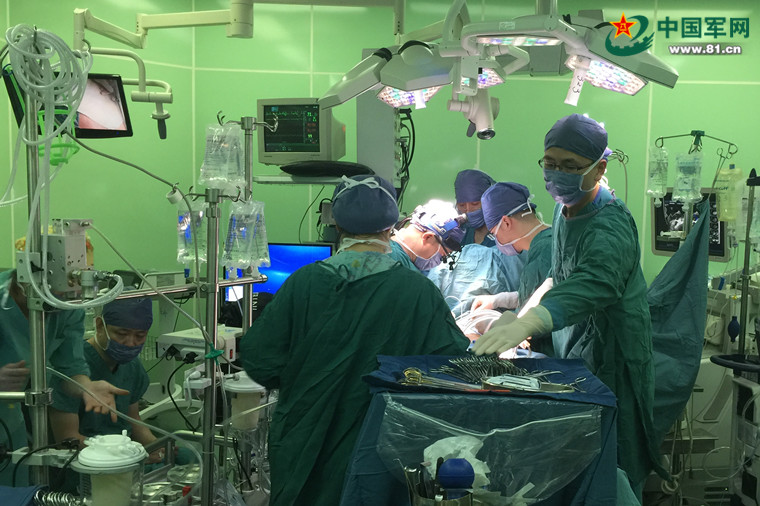 手術室里,空氣凝重,一切準備就緒。通過進一步檢查,軍官袁某的主動脈夾層撕裂得非常嚴重,真假腔出現(xiàn)分離,假腔內血栓形成,近端撕裂達主動脈根部,已經(jīng)出現(xiàn)心包積液,降主動脈真腔被壓迫成一條細縫,導致內臟及下肢灌注不良,無名動脈受血腫壓迫造成腦部供血不足,主動脈夾層隨時破裂致命。