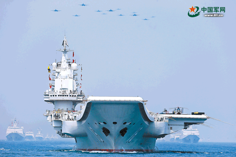 4月12日上午,中央軍委在南海海域隆重舉行海上閱兵。這是遼寧艦航母編隊(duì)精彩亮相。解放軍報(bào)記者 張 雷攝