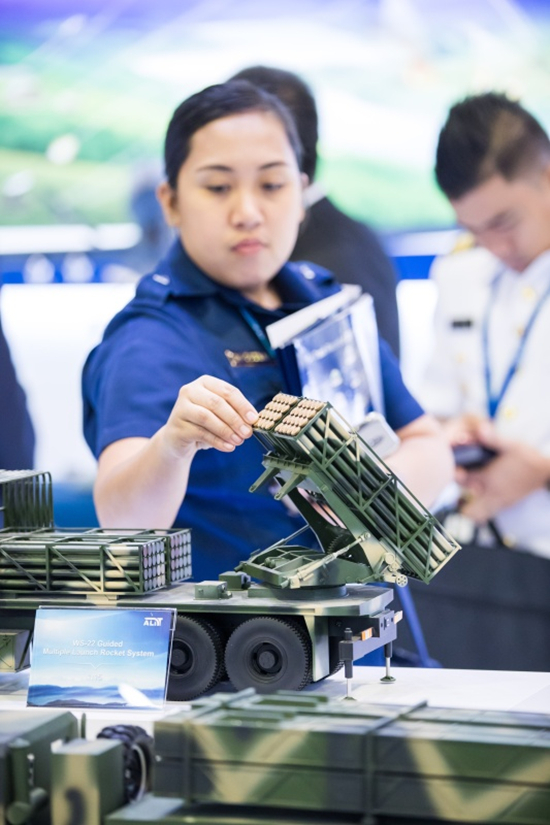 4月16日,在馬來西亞吉隆坡舉行的第16屆馬來西亞亞洲防務(wù)展上,來賓在“中國防務(wù)”展區(qū)參觀。新華社記者 朱煒 攝