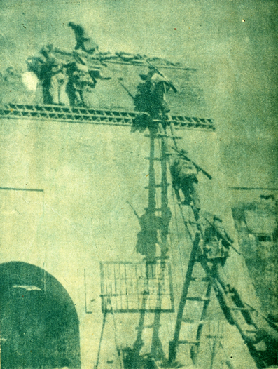 解放軍進(jìn)攻宜川登上城垣。