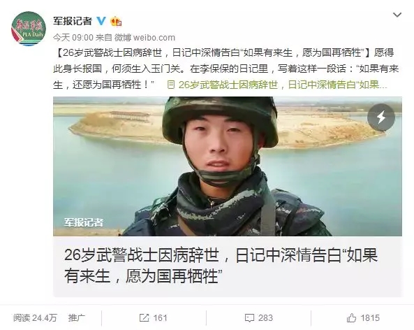 4月24日下午3時38分,鋼鐵戰(zhàn)士李保保走了