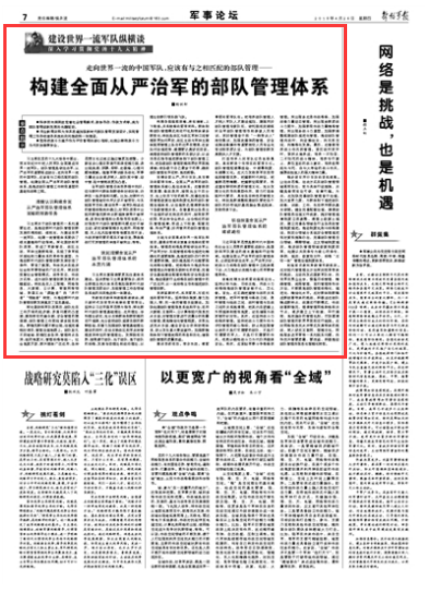 走向世界一流的中國軍隊(duì),應(yīng)該有與之相匹配的部隊(duì)管理——