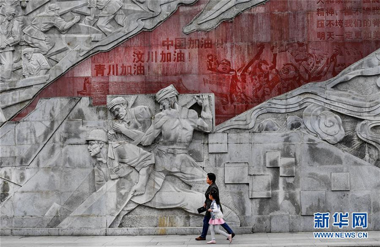 4月26日,市民從感恩奮進墻前走過。感恩奮進墻是花崗巖浮雕墻,長230米,高12米,再現(xiàn)了青川的風土人情、歷史文化和眾志成城、自強不息的抗震救災精神、地震災后重建和生態(tài)青川的壯美畫卷。新華社記者陶明攝