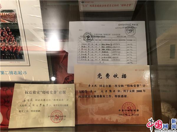 2018年5月4日,四川德陽什邡市七一中學校內(nèi)展出的“特殊黨費”收據(jù)。中國網(wǎng) 董小迪 攝