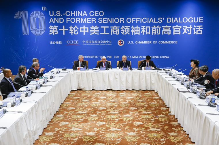 5月15日,第十輪中美工商領(lǐng)袖和前高官對話開幕式在北京舉行。新華社記者 沈伯韓 攝
