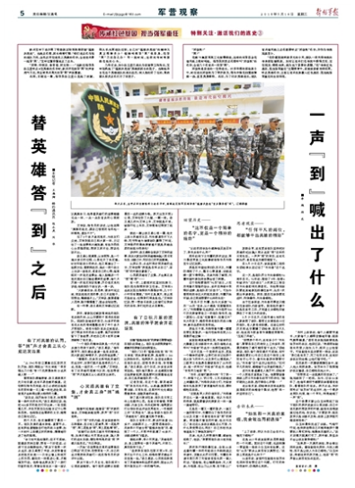“慢慢的,后來耳邊再響起英雄們的名字時(shí),對(duì)我們就不是簡單的幾個(gè)人名,而是一段歷史、一個(gè)故事。”艾坤說,有了對(duì)英雄的理解與認(rèn)同,他覺得答“到”聲才是真正從心底迸發(fā)出來的。請(qǐng)關(guān)注今日《解放軍報(bào)》的報(bào)道——