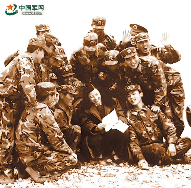 接下來,作家劉醒龍喘著氣為戰(zhàn)士們唱了《小白楊》,作家王曼玲一邊吸氧一邊為戰(zhàn)士們宣讀了李排長的“情書”,讓戰(zhàn)士們開心得嗷嗷叫。只是因為缺氧,她念了幾段就堅持不下,我又接續(xù)讀信。我們的主編熊家海(已去世),則一個個地為戰(zhàn)士們拍照。他們都給戰(zhàn)士們帶去了歡笑和快樂,只有我沒出息,留下的是眼淚。