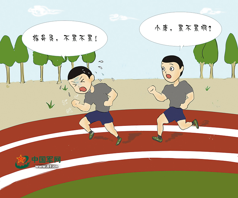 一天下午體能訓(xùn)練時,我看到戰(zhàn)士唐堯氣喘吁吁、臉色煞白,便連忙讓他停下來,并說道:“累了吧?休息會。”唐堯抬頭看看我,一邊不停地擦汗,一邊連忙應(yīng)道:“指導(dǎo)員,不累不累。”