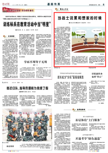 有些骨干把戰(zhàn)士敢說苦累與怕苦怕累等同了起來,把思家想親與不安心本職掛起了鉤,讓戰(zhàn)士“吃苦不言苦”,一味追求“豪言壯語”式的表態(tài),結(jié)果導(dǎo)致戰(zhàn)士不敢說出真實想法。于是,這個連專門搞了一次教育,給大家的思想“松了松綁”。請關(guān)注今天出版的《解放軍報》的報道——