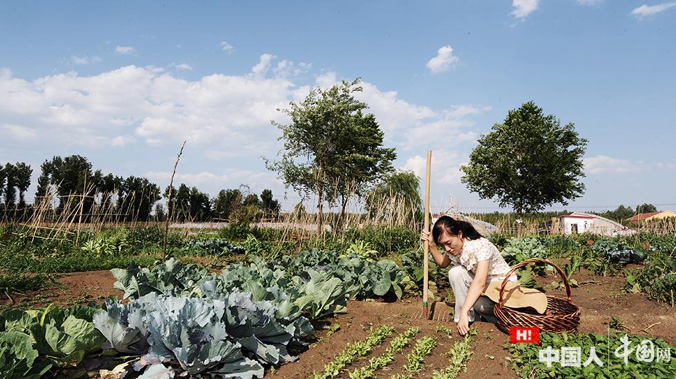 圖為石嫣在農(nóng)地里觀察農(nóng)作物生長情況