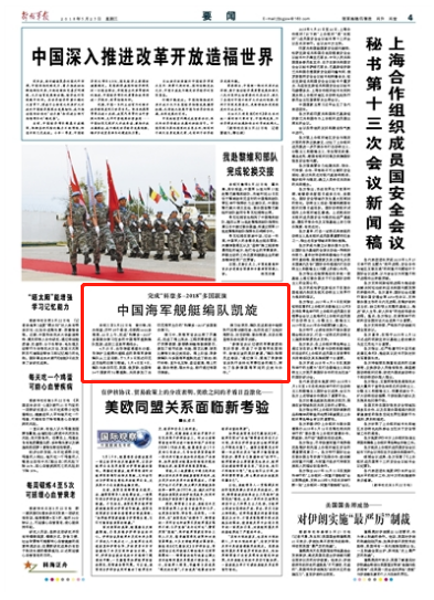 歷時(shí)28個(gè)晝夜,總航程6600多海里,22日上午,完成“科摩多-2018”多國(guó)聯(lián)合演習(xí)任務(wù)的中國(guó)海軍艦艇編隊(duì)凱旋,返回三亞某軍港碼頭。請(qǐng)關(guān)注今日《解放軍報(bào)》的報(bào)道——