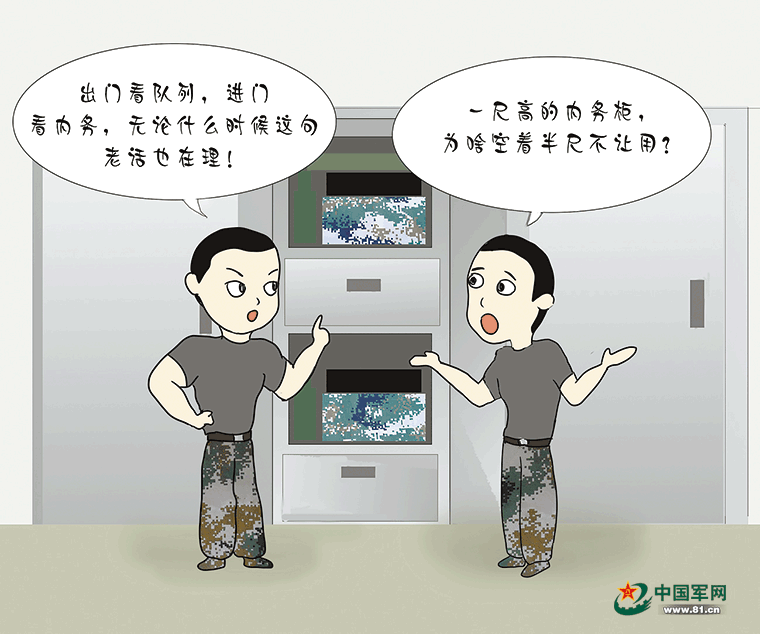 “一尺高的柜子半尺閑置,逼著大家把個人物品到處藏;檢查標準過分追求美觀,棱棱角角吹毛求疵……”小李委屈地敲開了連長許寧波的門,像竹筒倒豆子似的,把自己心里的苦悶都說了出來。