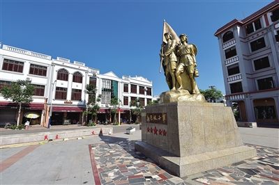 瓊海市陽江鎮(zhèn)街頭的紅色娘子軍雕像。 本報記者 王凱 攝