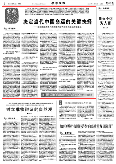 歷史,總是在一些特殊年份給人們以汲取智慧、繼續(xù)前行的力量。改革開放40年來,中國人民用雙手書寫了國家和民族發(fā)展的壯麗史詩。當(dāng)我們隆重慶祝改革開放40周年之際,回頭看看走過的足跡、創(chuàng)造的輝煌,重要的不僅是為已經(jīng)取得的成就歡慶和自豪,更要把歷史邏輯、理論邏輯和實踐邏輯貫通起來,用權(quán)威觀點引領(lǐng)官兵對改革開放的再認(rèn)識、再理解,從而進(jìn)一步深化對習(xí)近平新時代中國特色社會主義思想及其“軍事篇”的理解和把握,強化“四個意識”、堅定“三個維護(hù)”,不斷激發(fā)廣大官兵擁護(hù)改革、支持改革、投身改革的熱情。從今天起,《解放軍報》“思想戰(zhàn)線”版開始刊發(fā)相關(guān)理論文章,供讀者學(xué)習(xí)參考。