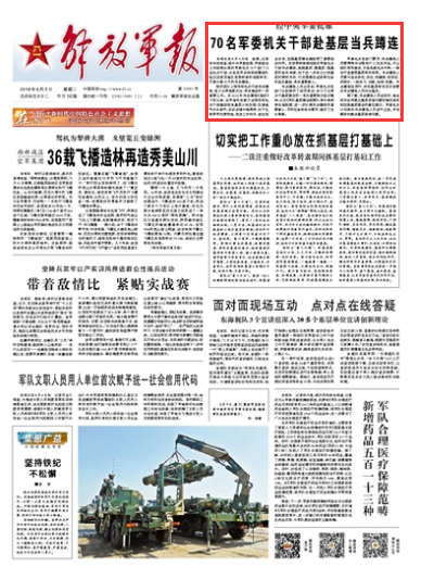 經(jīng)中央軍委批準,軍委政治工作部牽頭組織軍委機關(guān)15個部門70名機關(guān)干部,分赴各軍兵種和武警部隊駐邊遠艱苦地區(qū)改革轉(zhuǎn)隸的連級單位,開展為期15天的當兵蹲連。請關(guān)注今日《解放軍報》的報道——