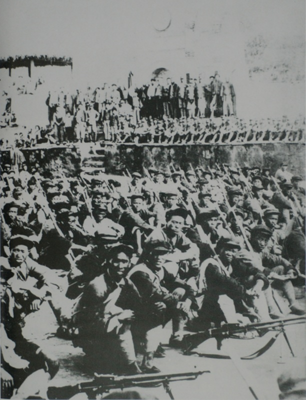 1935年9月16日,紅25軍在陜西省延川縣永平鎮(zhèn)(今永坪)同陜甘紅軍會師。圖為會師時(shí)的情景(資料照片)。
