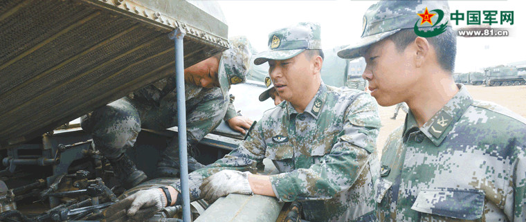 僅有初中學(xué)歷的火炮維修大拿、二級軍士長張新昌,為戰(zhàn)友講解火炮維修原理。王樂意攝