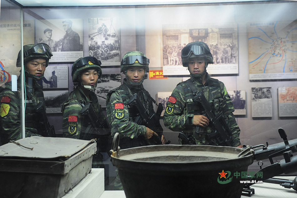 官兵們仿佛看到當(dāng)年的艱難困苦。(袁浩翔攝)