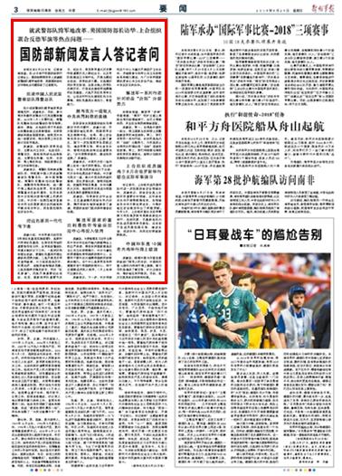 國防部新聞發(fā)言人答記者問